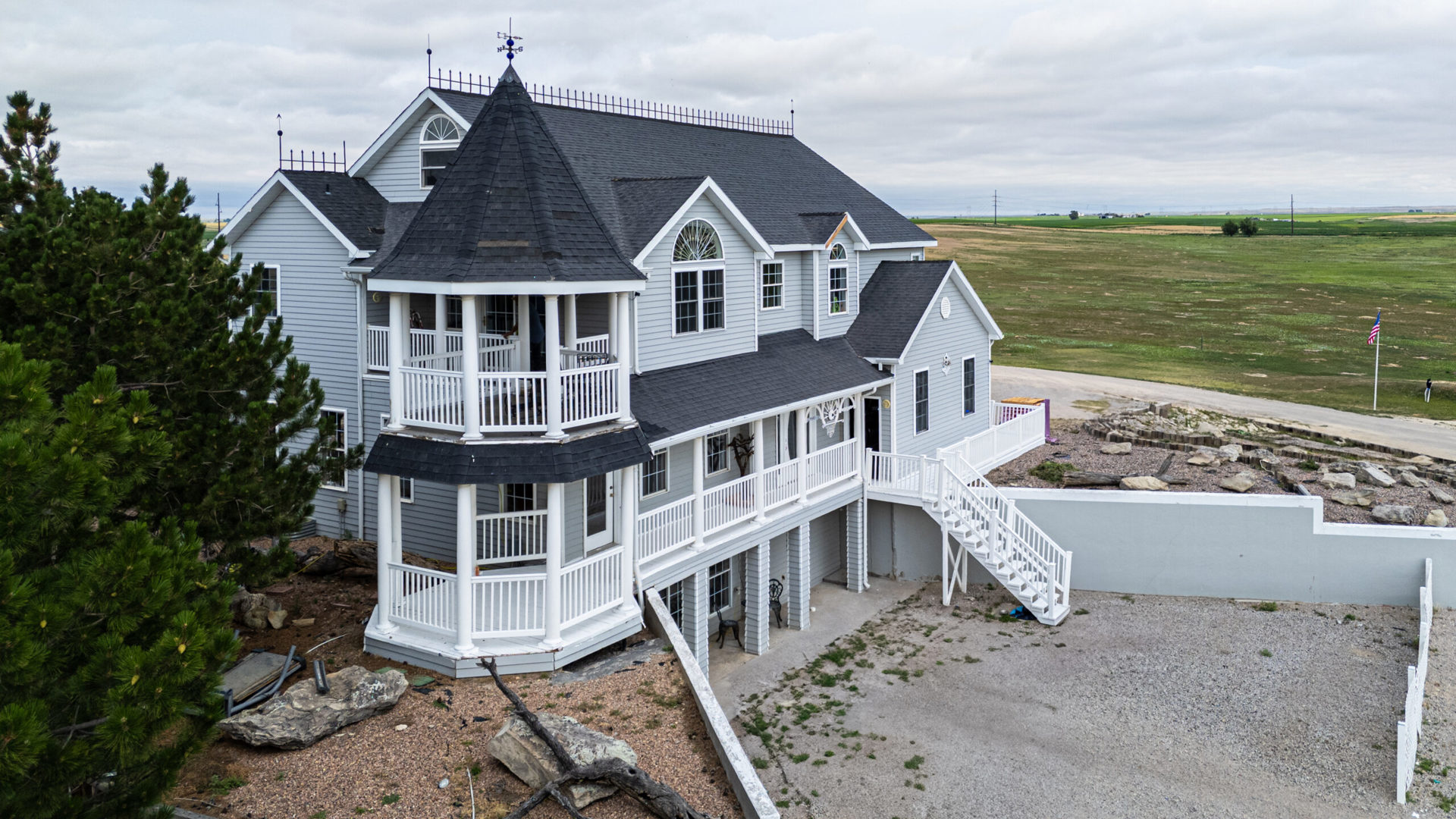 Designed as a one-owner custom estate, this four-level residence offers rare vertical scale, openness, and architectural presence seldom found in rural Colorado properties. Thoughtfully positioned on a hilltop setting with panoramic views in every direction, the home delivers privacy, intention, and a true sense of arrival. Surrounding the