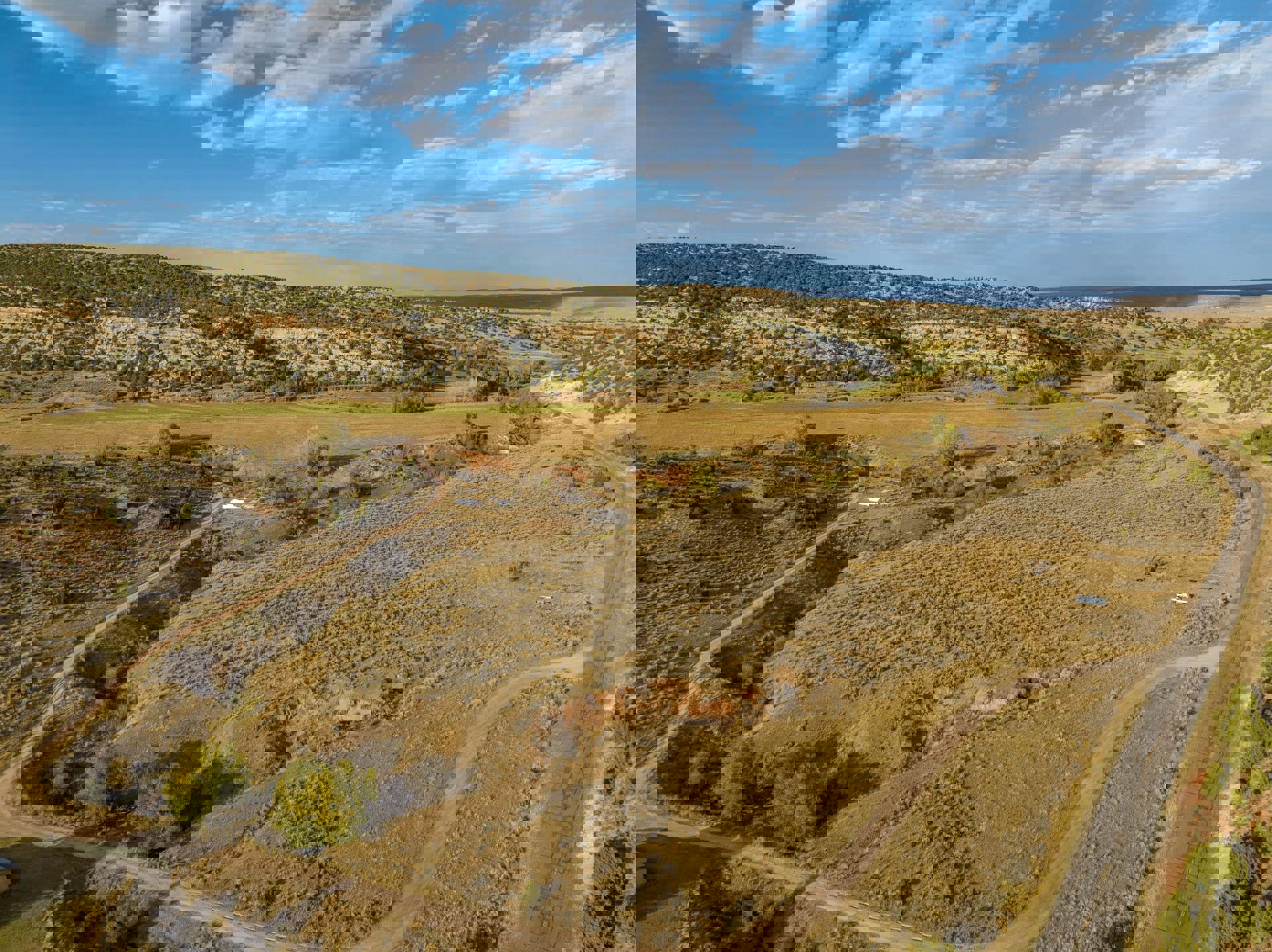 Live water throughout the entire Ranch makes it ideal for grazing, along with irrigated ground on both ends of the Ranch. The land is gently sloped with lush creek bottoms and red rock outcroppings. Beason Creek flows in on the North end of the Ranch and Willow Creek flows in through the South end. They then converge together on the