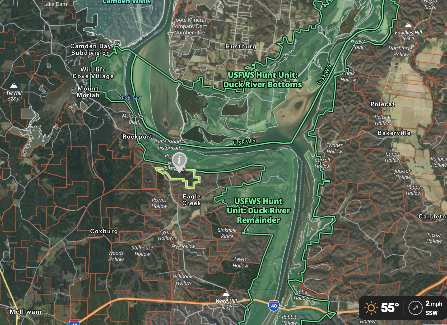 This property adjoins the Tennessee Wildlife Refuge Unit 4 and overlooks the Tennessee River. Gated access with a main road through the property. Great timber and a healthy deer and turkey population. The gate is an hour and a half drive to downtown Nashville and there are several great places to build on the property. This is a great recreational property, perfect for a getaway retreat.