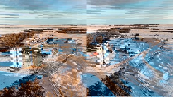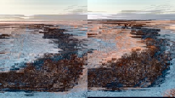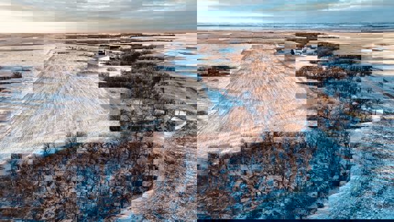 This 640± acres in Mellette County is mostly productive farm ground, with pasture and creek bottoms mixed in. The farmstead includes a one-story main home with basement space, a smaller second house, a shop, grain bin, and two sheds. Oak Creek and Whitehorse Creek run through the property, adding water, cover, and a break from the open fields.