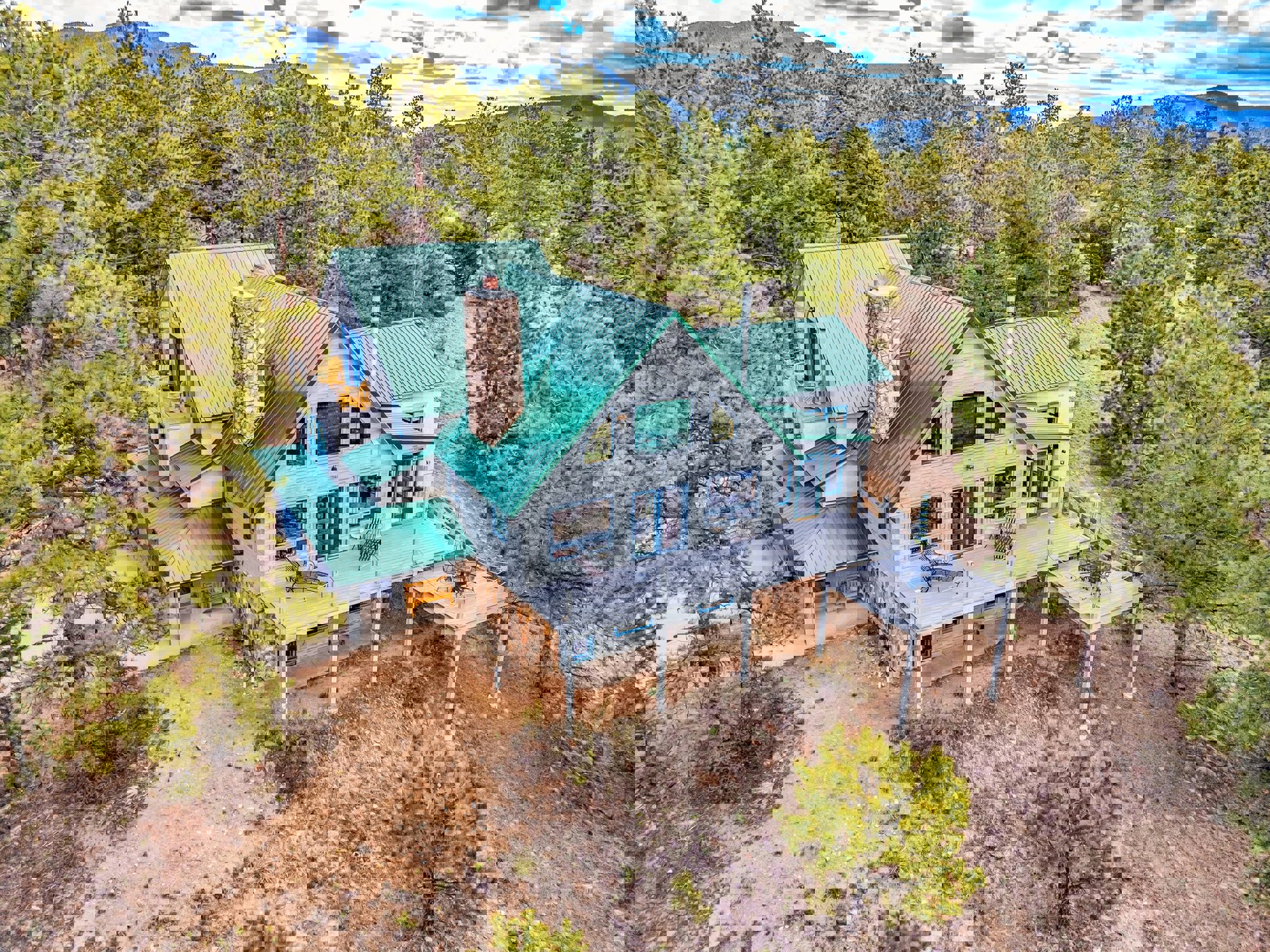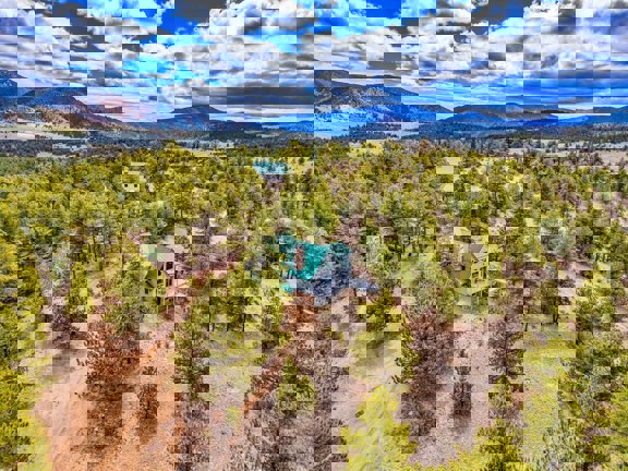 This beautifully crafted home is set on a stunning 77.7 acre parcel of land offering 360-degree views, including breathtaking vistas of four fourteeners