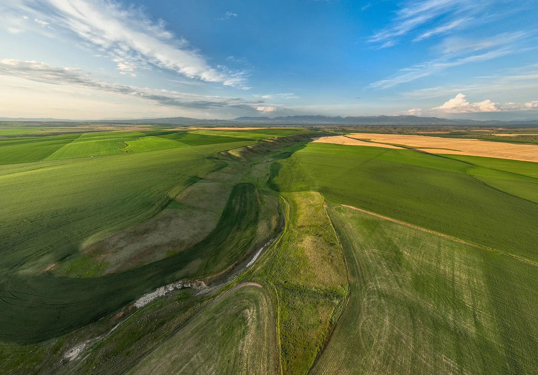 The 1,100+/- Amsterdam Farm lies a brief half hour west of the desirable mountain community of Bozeman in the fabled farmland hills of the small agricultural community of Amsterdam. Many regard this area as some of the finest dryland farmland within the region. Lands rarely become available and are held in families for generations, enriching the culture of their ancestors. The area was settled by Dutch farmers in the 1890s, who found that the rich, silty loam soils g