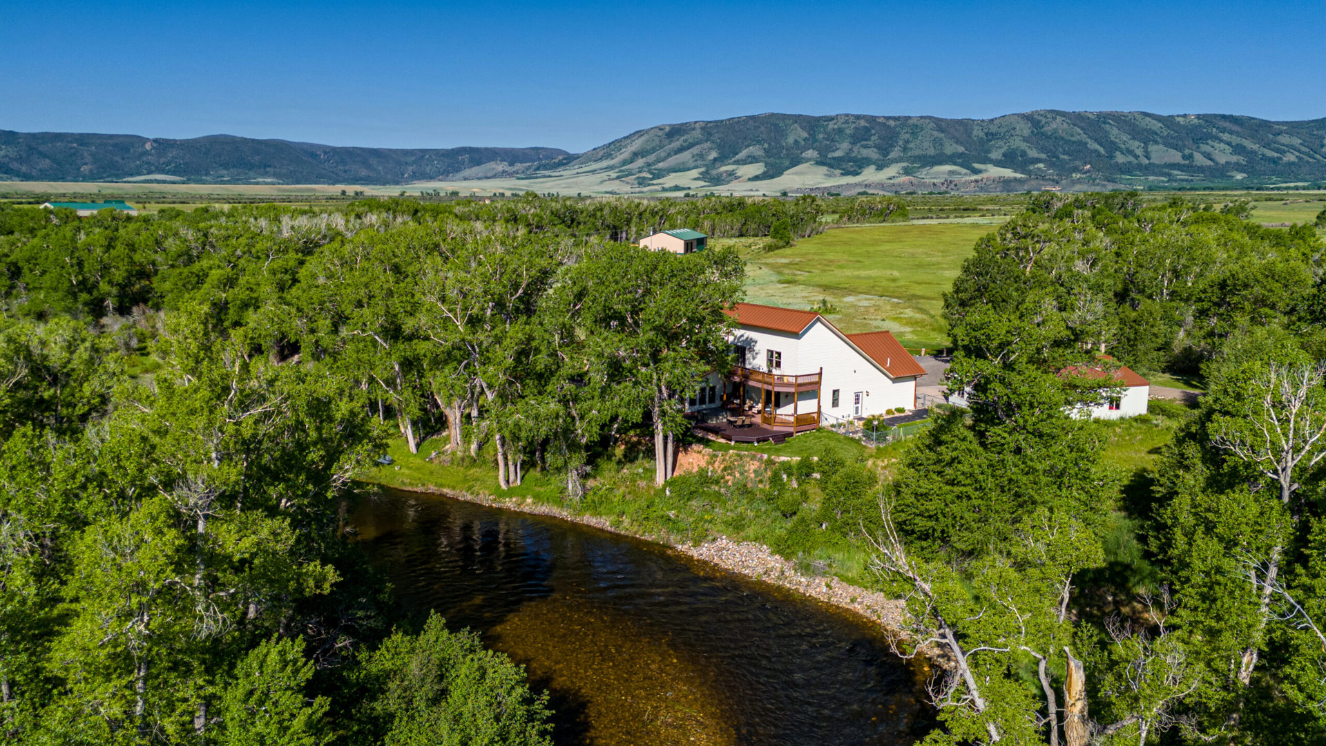 Carved from a larger ranch, this secluded five-acre slice of Wyoming is naturally hidden from view by a canopy of mature cottonwoods, willows, and native grasses. The