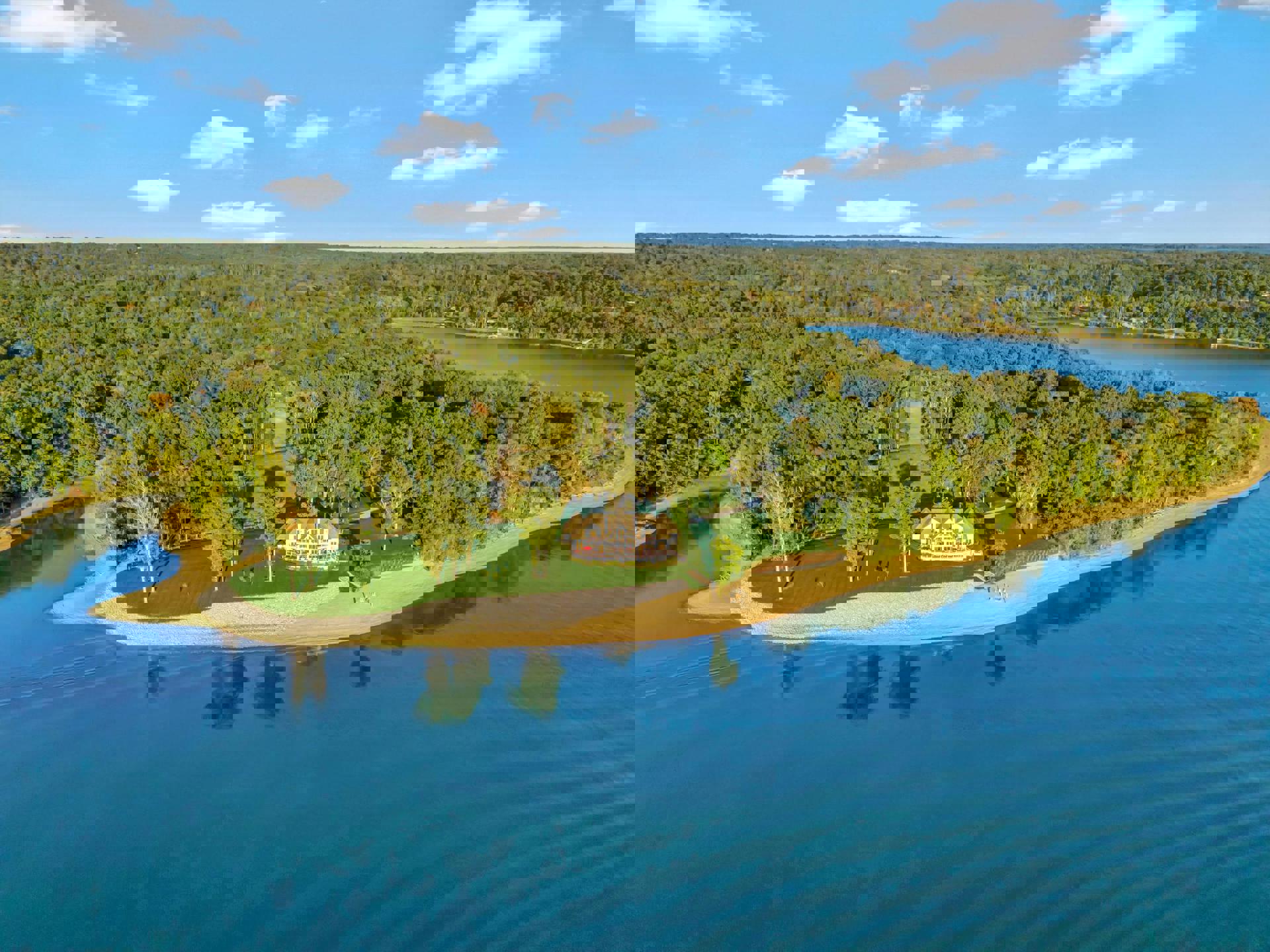 Welcome to Eagle Shore Estate, where luxury meets recreation on the east shore of Kentucky Lake. This stunning waterfront paradise is 28+/- acres and offers approximately 6,000 sq ft of refined living space with premium finishes, fireplaces, and spa-like amenities designed for ultimate comfort and enjoyment. Manicured grounds, a private pebble beach, a concrete boat launch, and a multi-slip dock system complete this exceptional lakefront retreat.