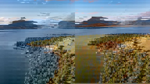 Like the cold, clear waters of Flathead Lake, mystique surrounds Cromwell Island. It overlooks the legendary Wild Horse Island, where Salish and Kootenai historically swam their horses to keep them safe from rival tribes. In the 1930s, construction started on a dam near Polson, Montana, at the outlet of the Flathead River. Prior to its completion, in periods of low water, Cromwell Island became a peninsula connected to the shore. It is all but certain that the Native Americans historically herded their horses onto this peninsula before swimming them across to Wild Horse. Today, Cromwell Isl
